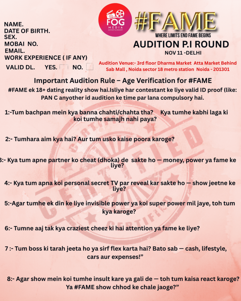 Newsroom: Official #FAME Updates Are You Ready Guys & Girls??? Your Talent, Your Story - Let's Get Started... Delhi Auditions Wrapped... Results Dropping Soon... 🚀